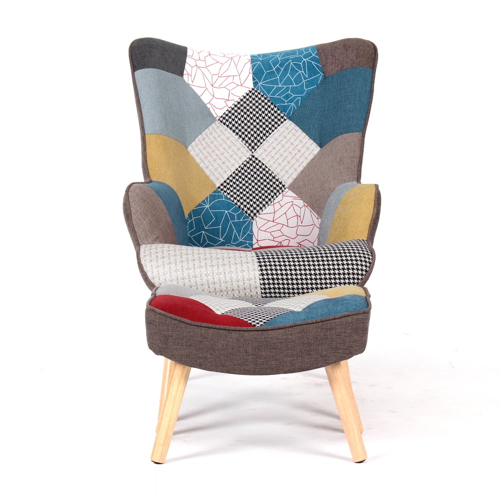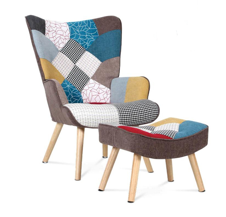 Удобно кресло с табуретка и дамаска в стил пачуърк.
