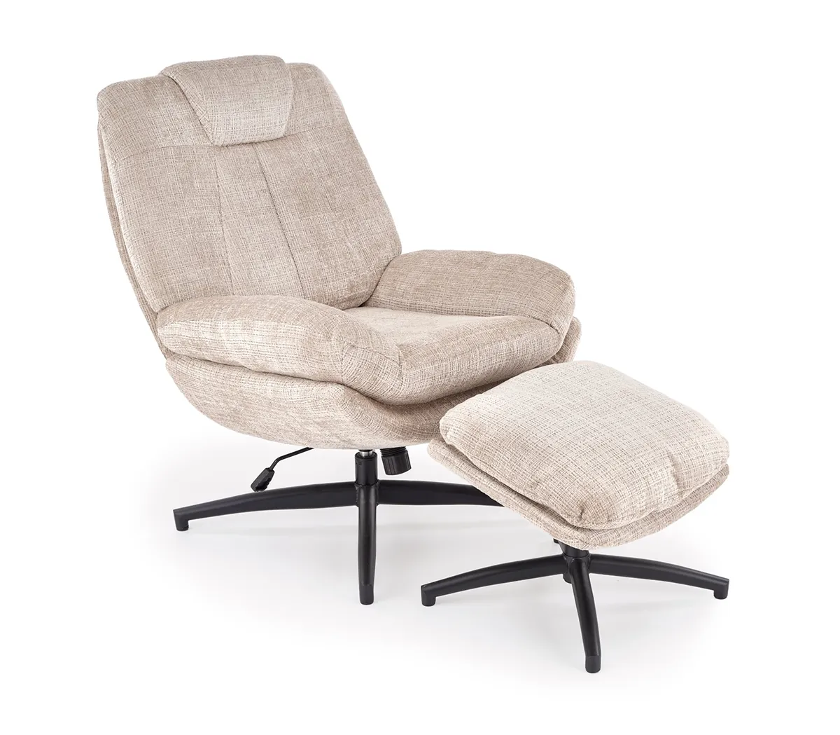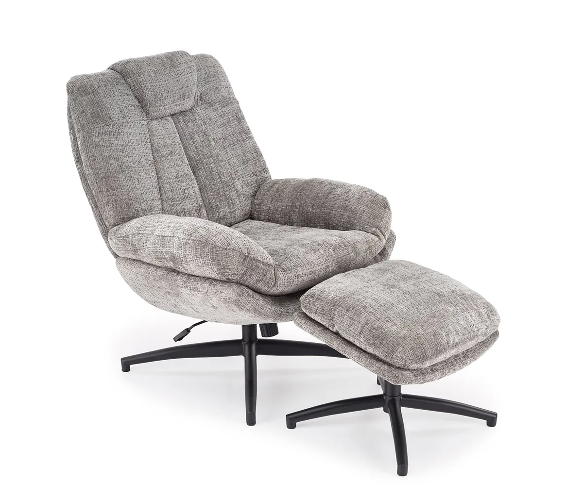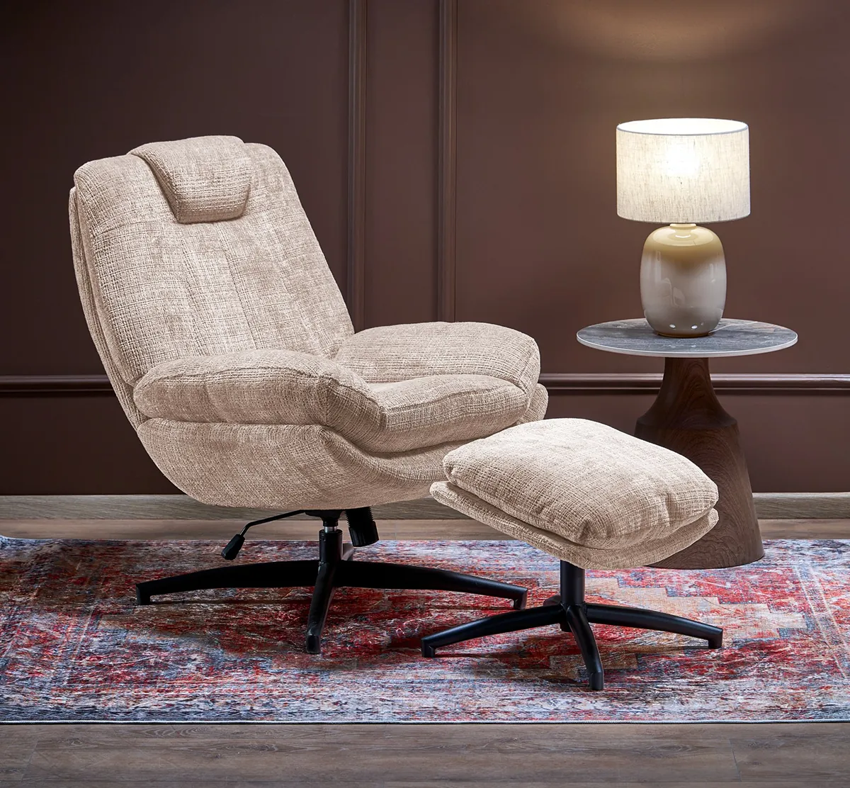 Кресло с функции въртене и люлеене Declan съчетавa удобство, ергономичен дизайн и стабилна метална конструкция. Моделът включва и табуретка за крака за пълен комфорт с книга в ръка или пред телевизора.