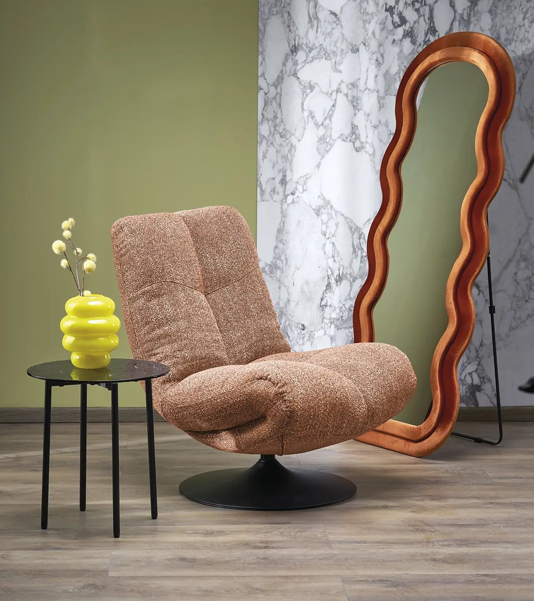 Кресло с въртящ механизъм Mango съчетава стилен дизайн, удобна форма и практична функция, което го прави подходящо за гъвкаво използване в зона за почивка. Моделът е с висока облегалка, която поддържа гърба в естествена позиция и осигурява стабилност при седене.