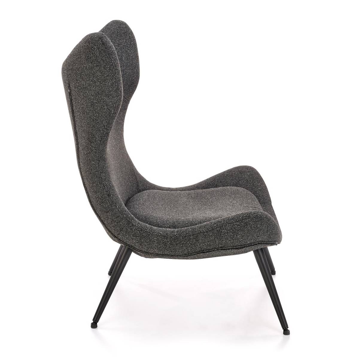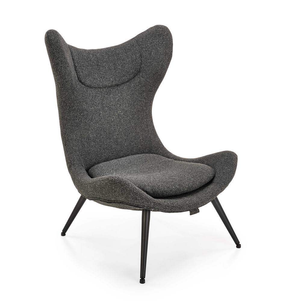 Стилно кресло с висока облегалка, изработено от текстил в цвят антрацит.
