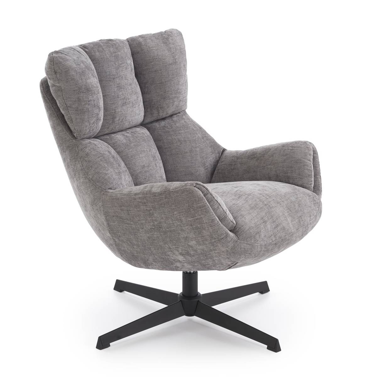 Модерно кресло за релакс в сиво или бежово с функция за въртене, изработено с висококачествена текстилна дамаска и стабилна основа от праховобоядисан метал.