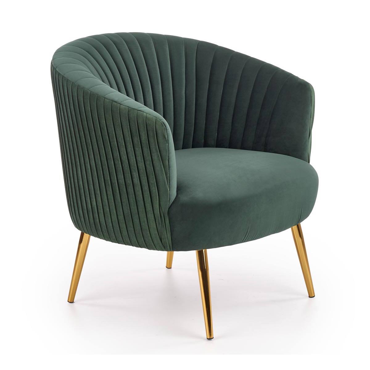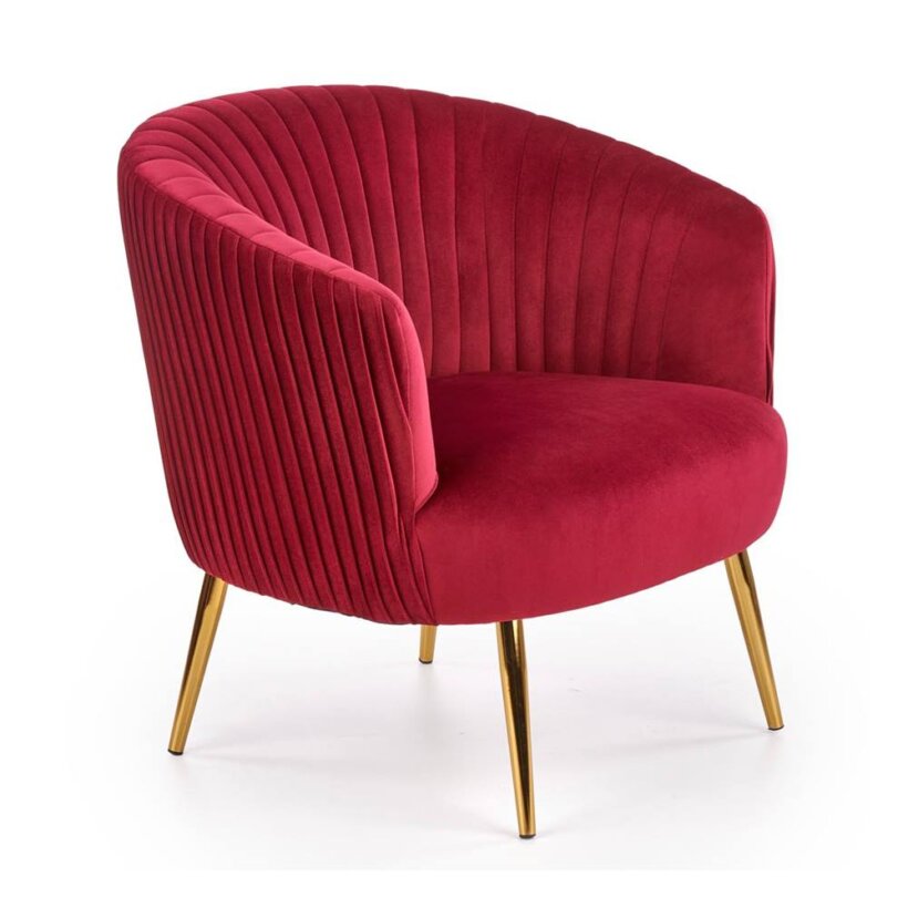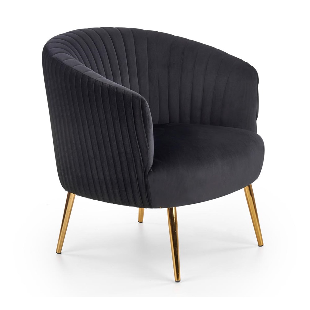 Модерно кресло със златисти крачета и кадифена дамаска в три цвята – черен, бордо или тъмнозелен.