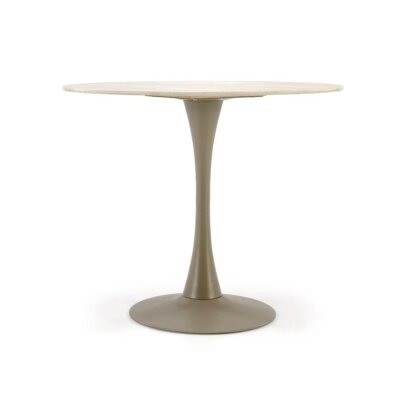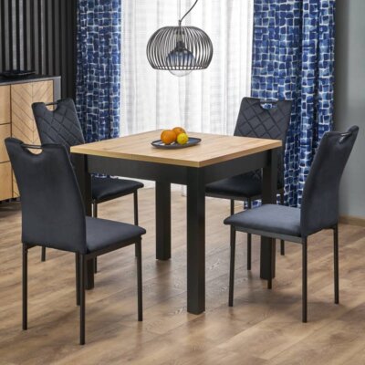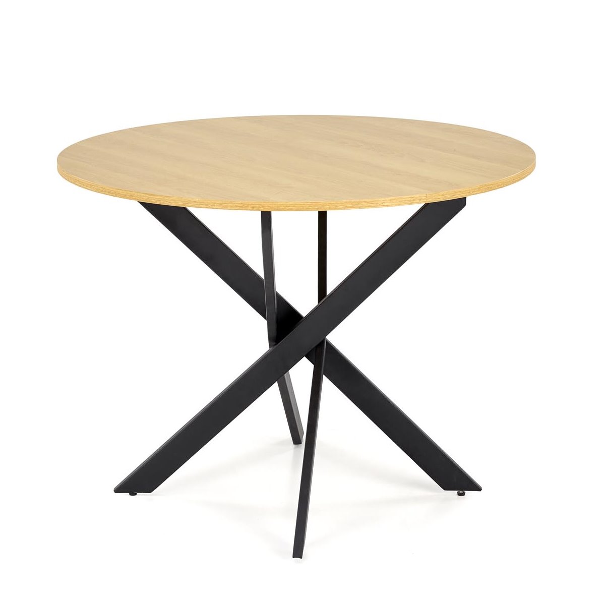 Кръгла трапезна маса за хранене, която се предлага с плот в два цвята: златен дъб и орех, Гарет.