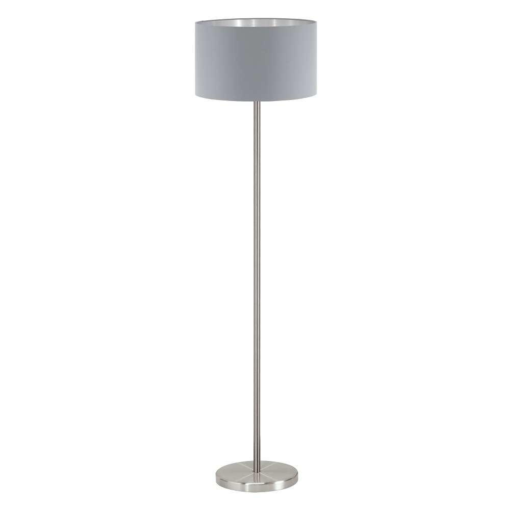 Елегантен лампион с модерен дизайн в сиво и сребристо, изработен от стомана и текстил, Eglo серия Maserlo.