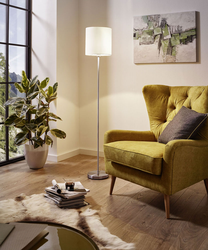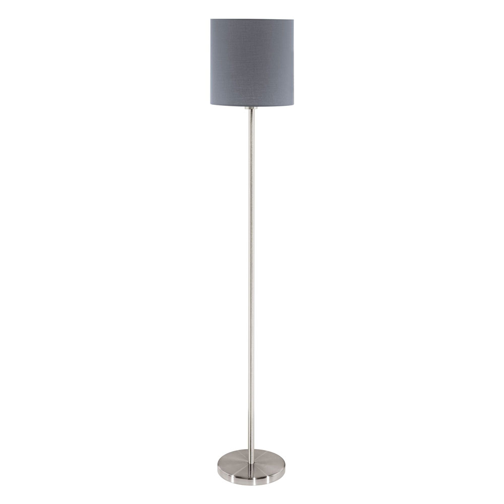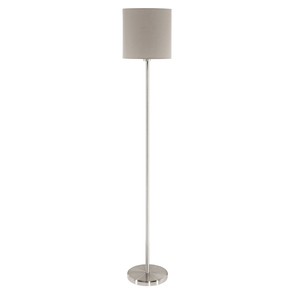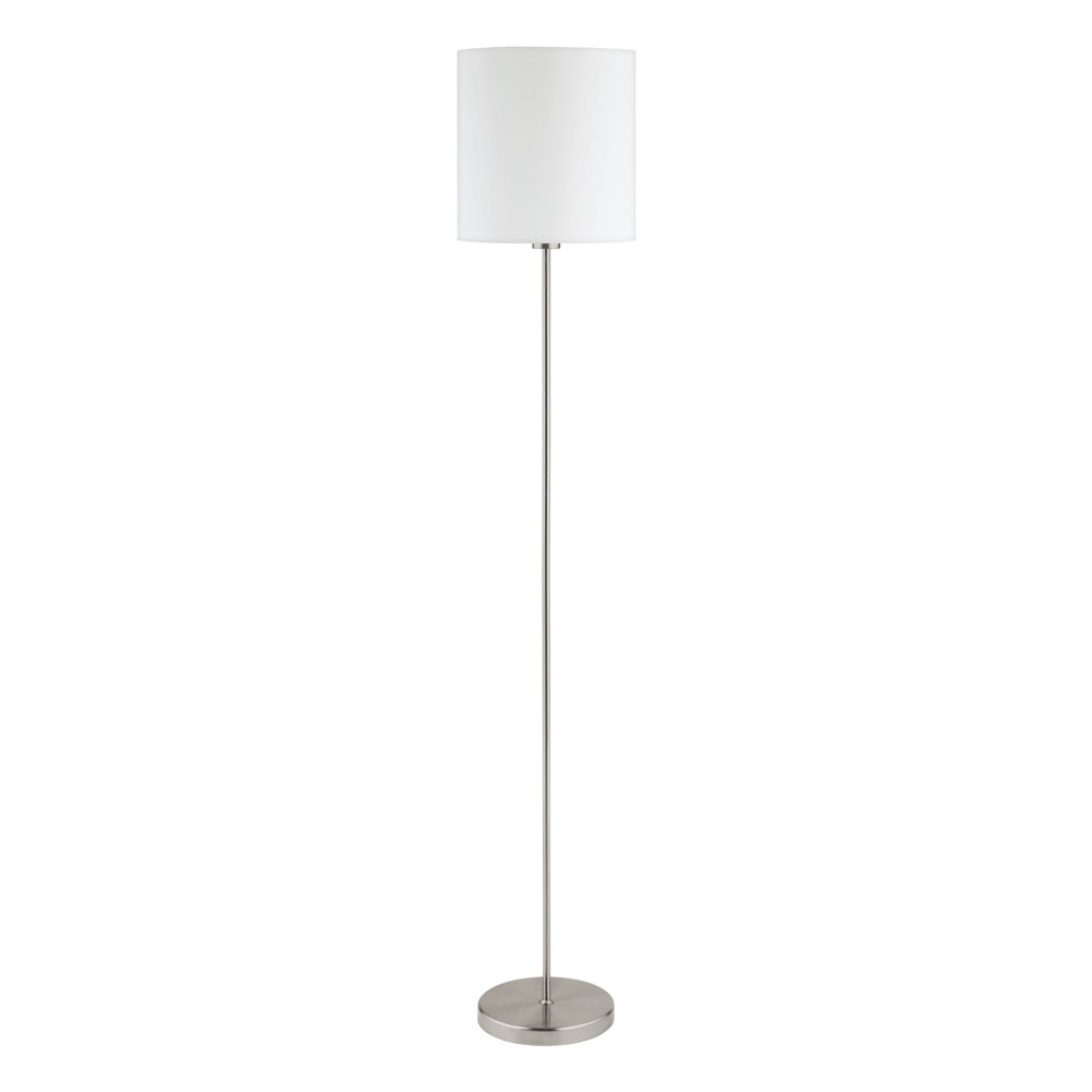 Лампион със стоманена основа в цвят никел мат и цилиндрично текстилно тяло, Eglo, серия Pasteri.