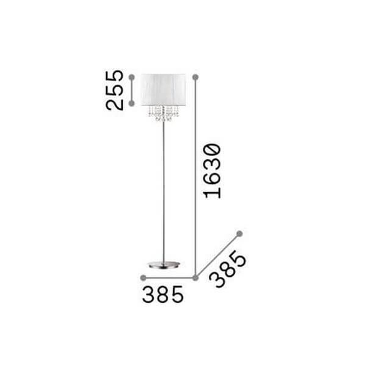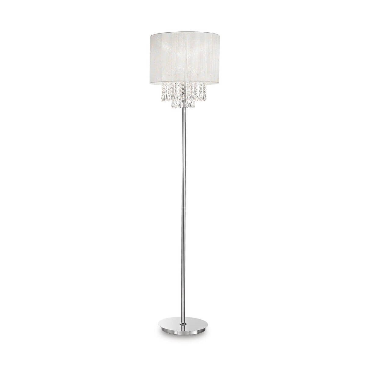 Елегантен лампион в бяло с метална основа и шапка от PVC фолио, покрито с текстил, и кристални висулки Ideal Lux, серия Opera.