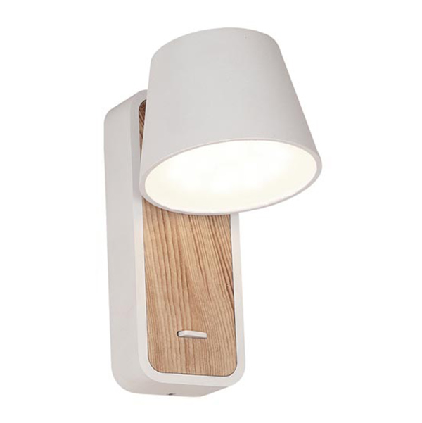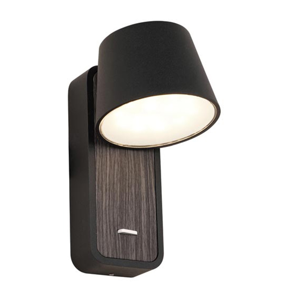 LED aплик с правоъгълна метална основа в дървесен цвят и подвижно конусовидно тяло Zambelis.