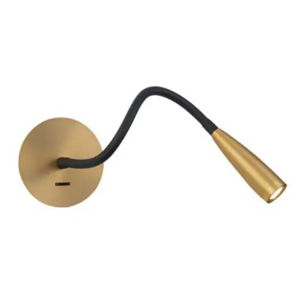 LED аплик с иновативен дизайн, изработен от метал в цвят месинг с черно гъвкаво рамо и включено USB зарядно Zambelis.