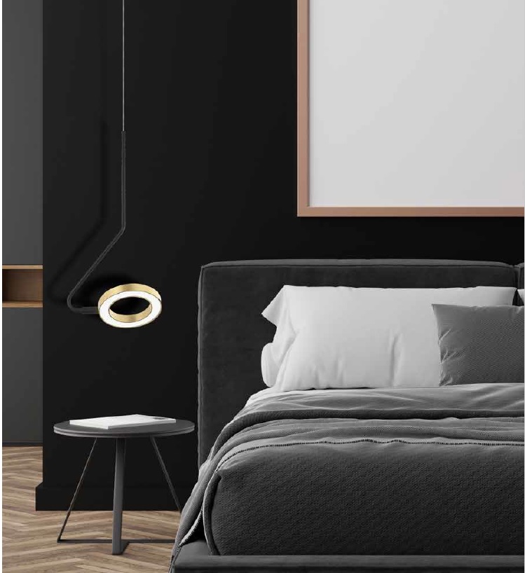 Оригинален LED пендел, изработен с метална основа, извито рамо и подвижно тяло във формата на ринг, Zambelis.