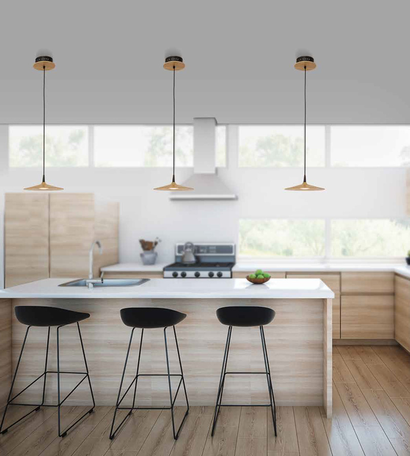 LED пендел, изработен от дърво в натурален цвят и метал в цвят черен мат с минималистична визия Zambelis.