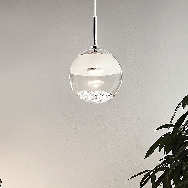Елегантен LED пендел с кръгла основа от стомана в цвят хром и прозрачна стъклена топка с кристал, Eglo, серия Montefio 1.