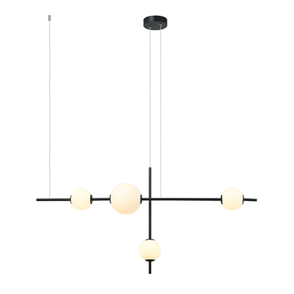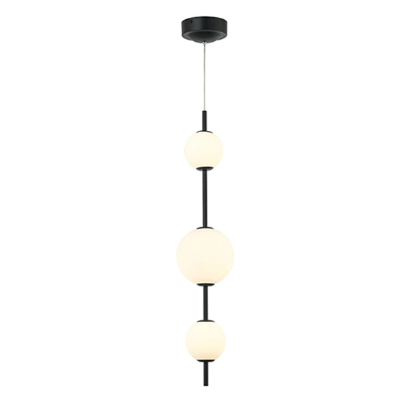 LED пендел с черна метална основа и рамо, допълнен със сферично тяло от опал стъкло Zambelis, серия Aragon.