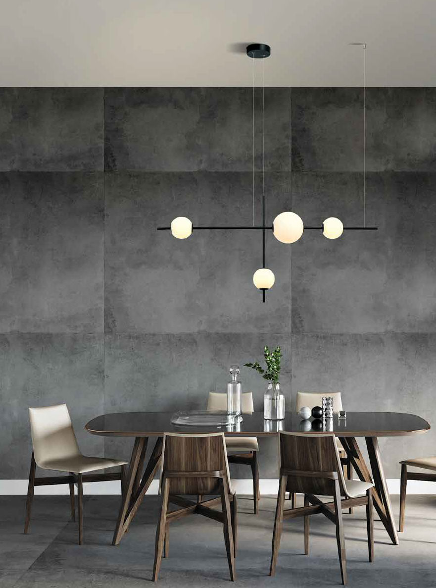 Вариант с 4 тела: основа – ∅ 13 х 3,2 см, височина рамо – 55 см, дължина рамо – 110 см, наличен кабел – 150 см, стъклено тяло – ∅ 16 + 3 х ∅ 11 см - Мощност: 12W / 18W