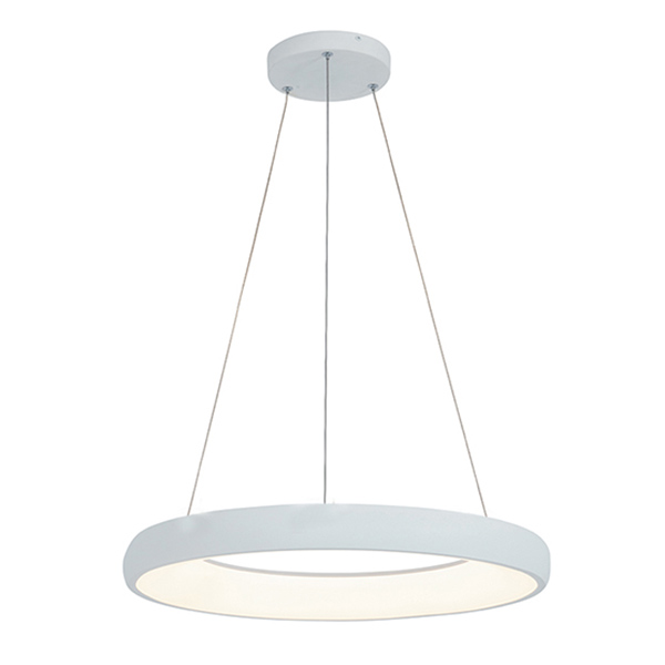 Модерен LED пендел с кръгла алуминиева основа, регулируема височина, разсейвател тип обръч и димер Zambelis, серия Neapoli.