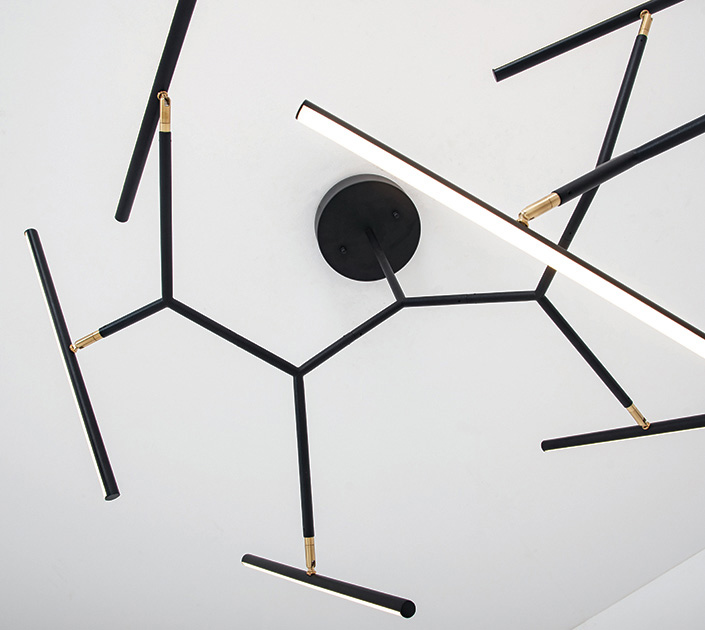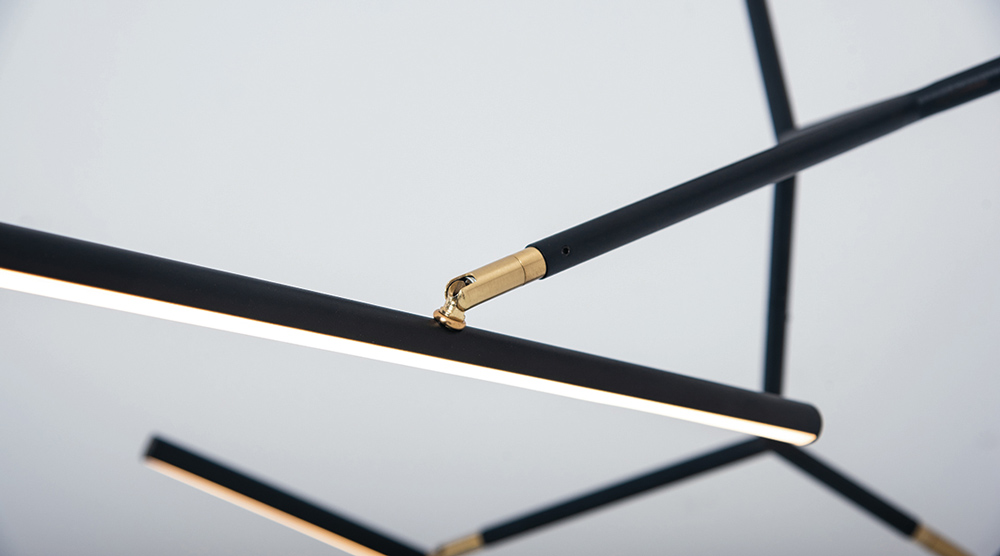 LED пендел със 7 подвижни тела в черен цвят - отблизо