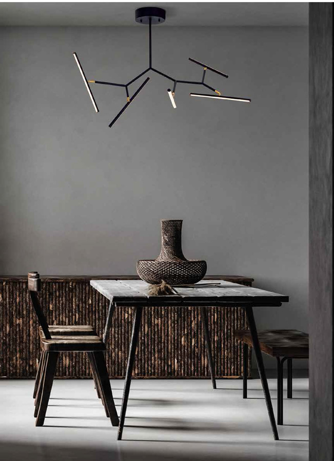 LED пендел с 5 подвижни тела в черен цвят - интериор