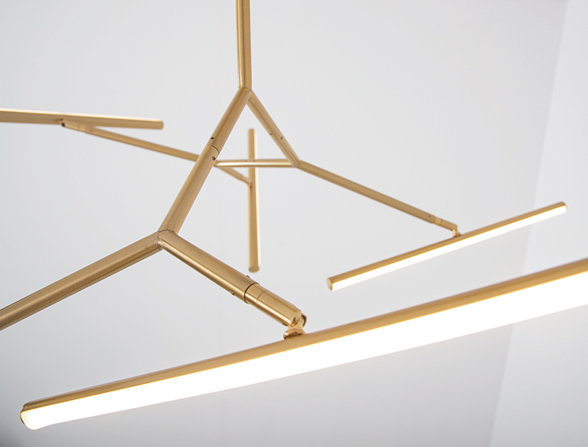 LED пендел със 7 подвижни тела в златист цвят - отблизо