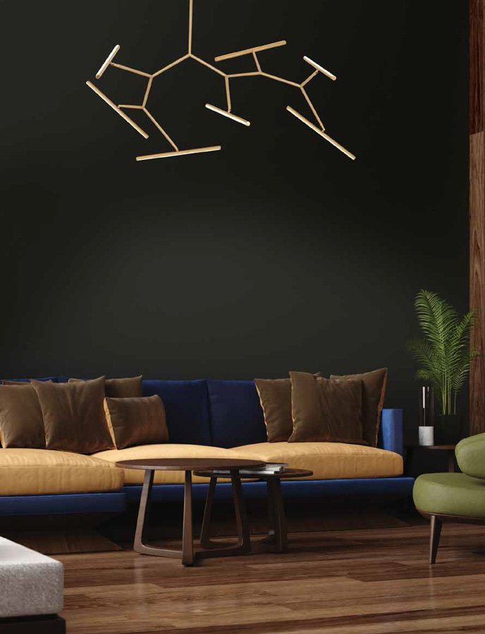 LED пендел със 7 подвижни тела в златист цвят - интериор