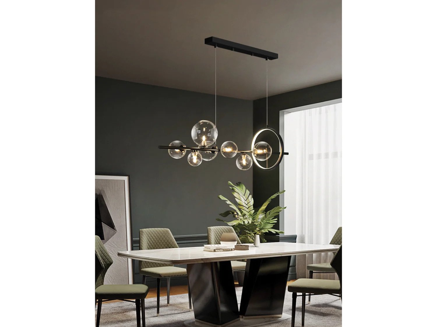 Оригинален LED пендел с метален ринг в черен цвят и висящо рамо със седем стъклени сфери, Zambelis.