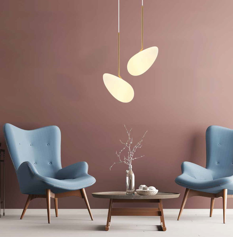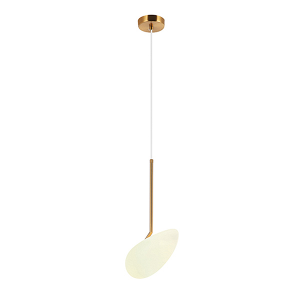 LED пендел с кръгла основа, рамо с чупка от метал и нестандартно тяло от опал стъкло Zambelis, серия Asturias.