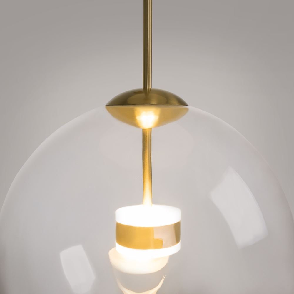 LED пендел, изработен от метална златиста основа и прозрачна стъклена сфера и регулируема височина Maytoni, серия Cometa.