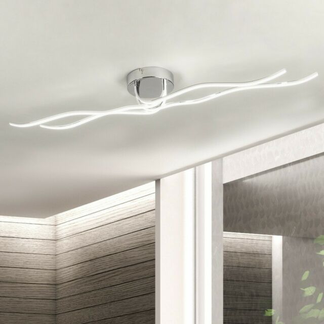 Елегантен LED плафон/аплик с извити форми, изработен от алуминий, стомана и пластмаса в цвят хром и бяло Eglo, серия Roncade.