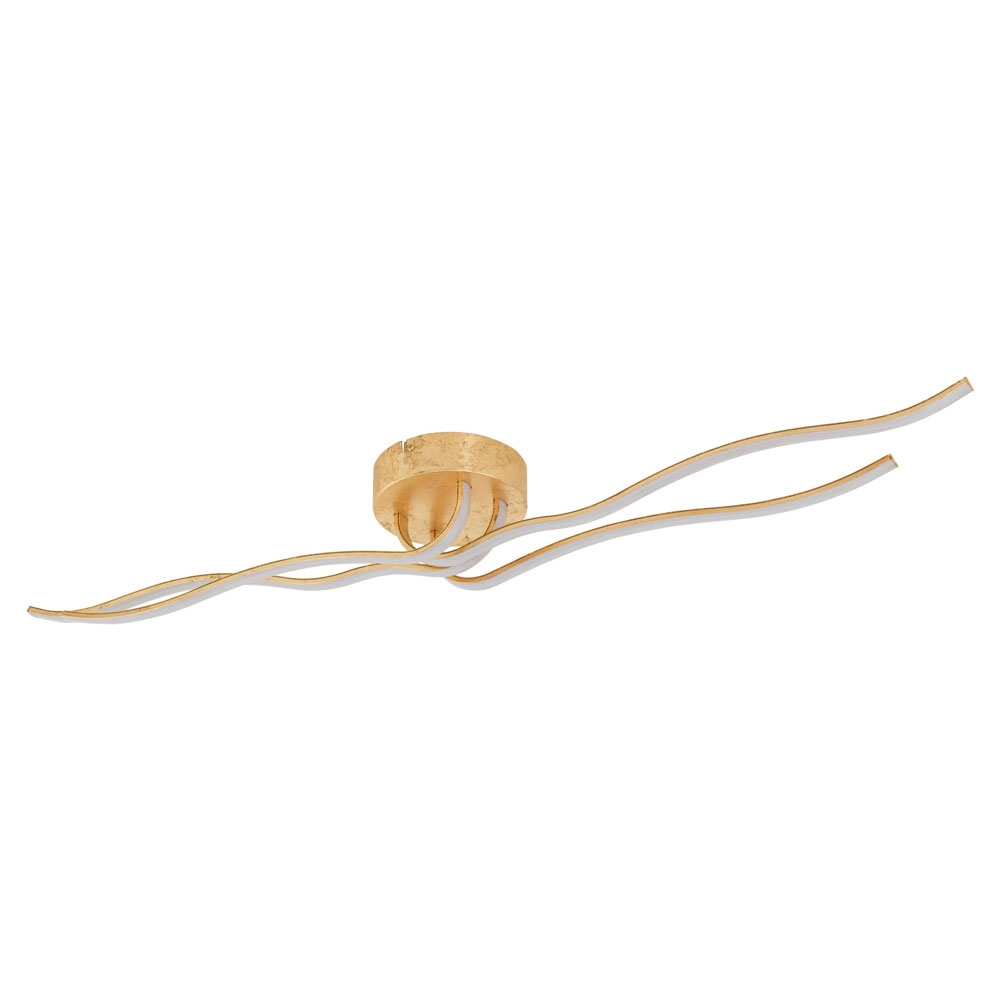 LED плафон/аплик, изработен от алуминий и стомана в златисто с продълговати извити тела с пластмаса в бял цвят, Eglo, серия Miraflores.