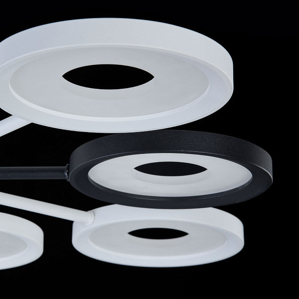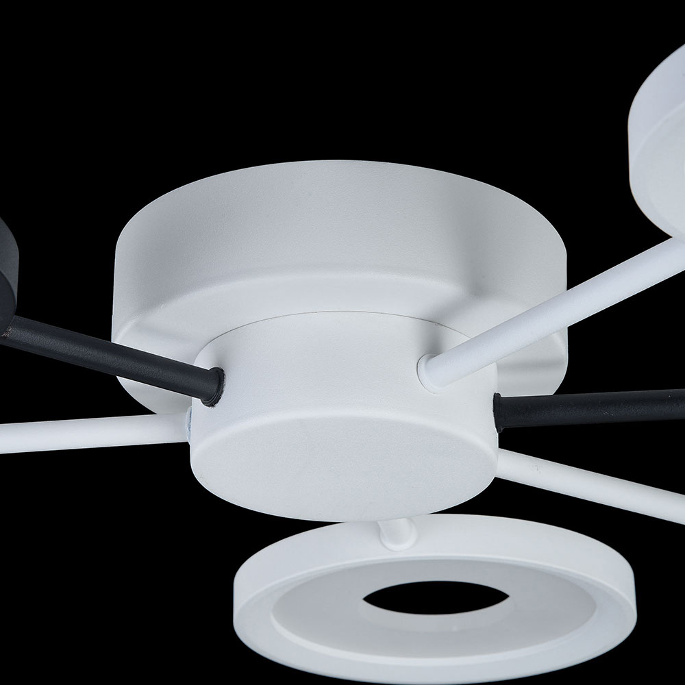 LED плафон, изработен от метал с шест кръгли тела излизащи като лъчи от основата Maytoni, серия Aprilia.