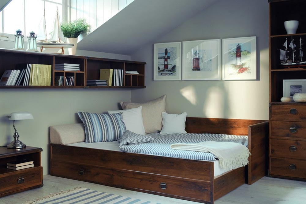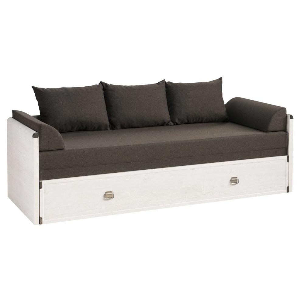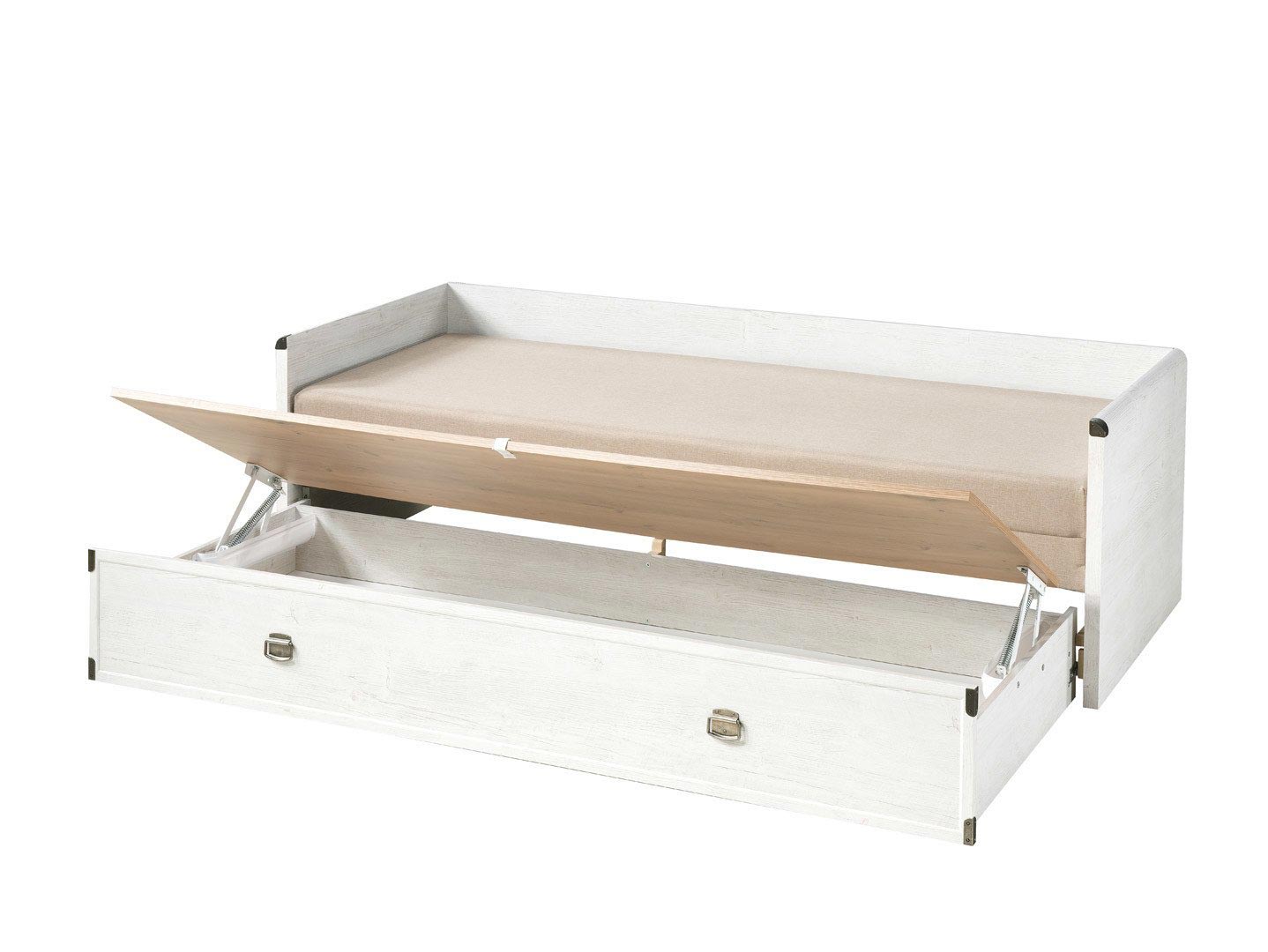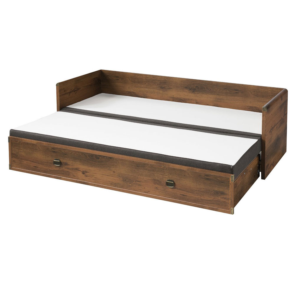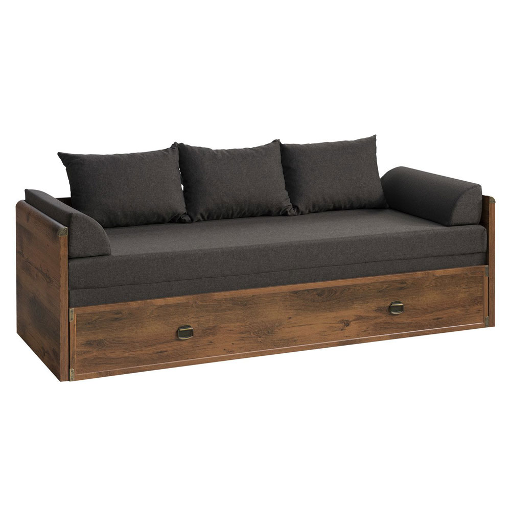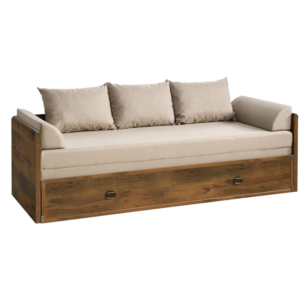 Легло кушетка със старинни метални елементи, удължение и място за съхранение в цвят дъб сутер или бор каньон, модулна система Индиана.
