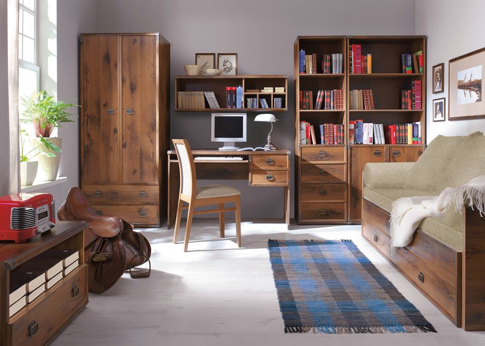 BRW предлага разнообразие от модулни системи за цялостно обзавеждане на дневна, трапезария, спалня и детска стая. Продуктовата гама включва легла, гардероби, шкафове, скринове, комоди, маси, столове, ТВ поставки, етажерки, витрини, бюра, тоалетки, портманта, закачалки, огледала и други. Корпусните мебели са решени в атрактивни дървесни нюанси или с покритие от бял гланц или мат.Ракла сандък с метални ъгли Индиана (2 цвята)