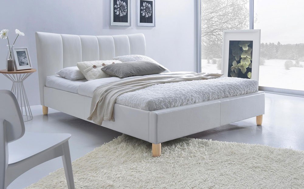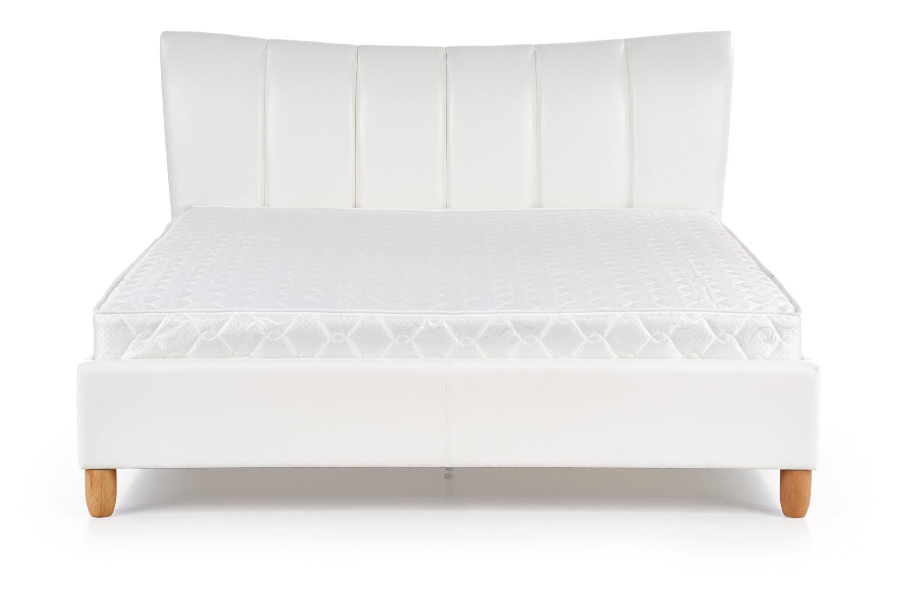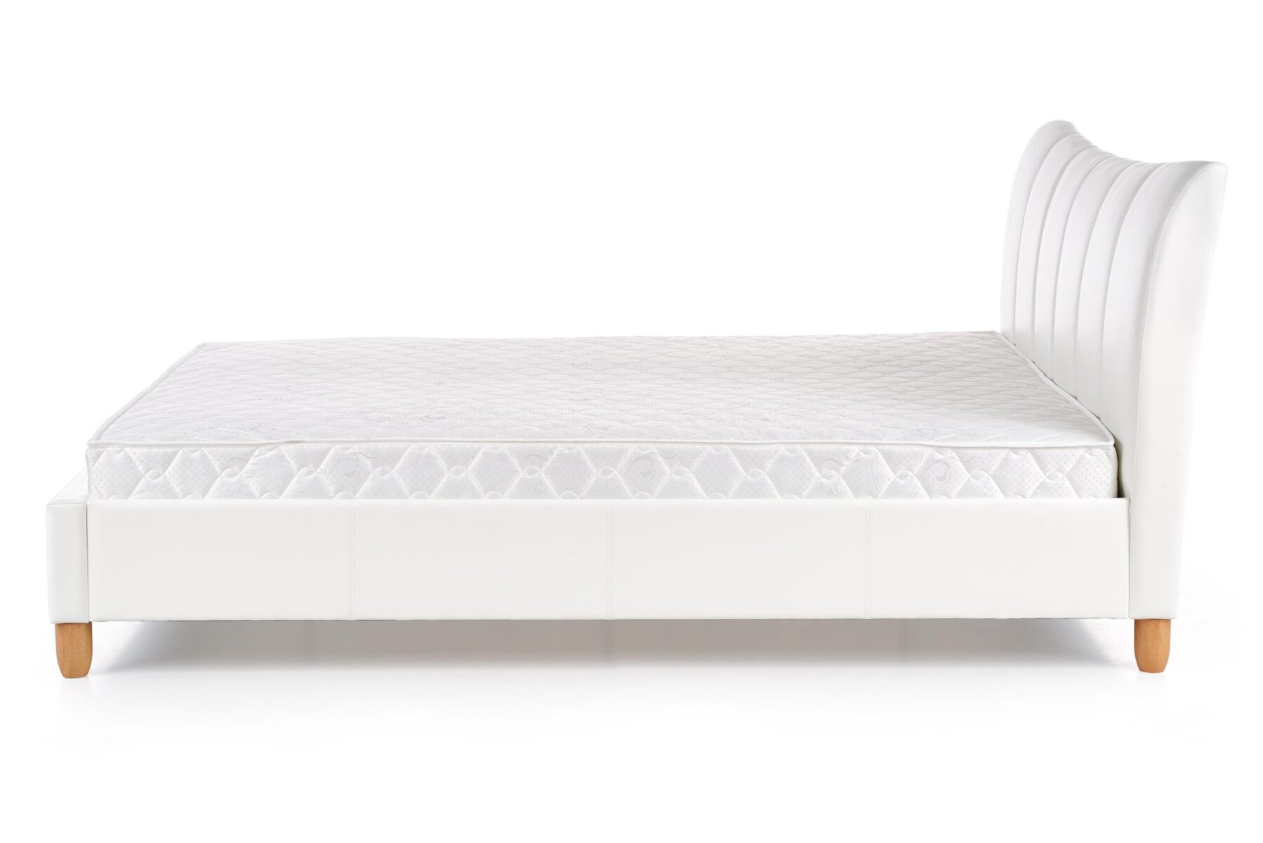 Елегантно тапицирано легло в бяла еко кожа на крачета с атрактивен дизайн, подходящо за матрак с размери 160 х 200 см.