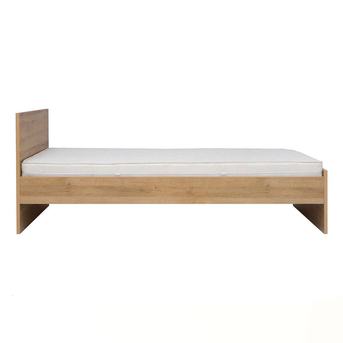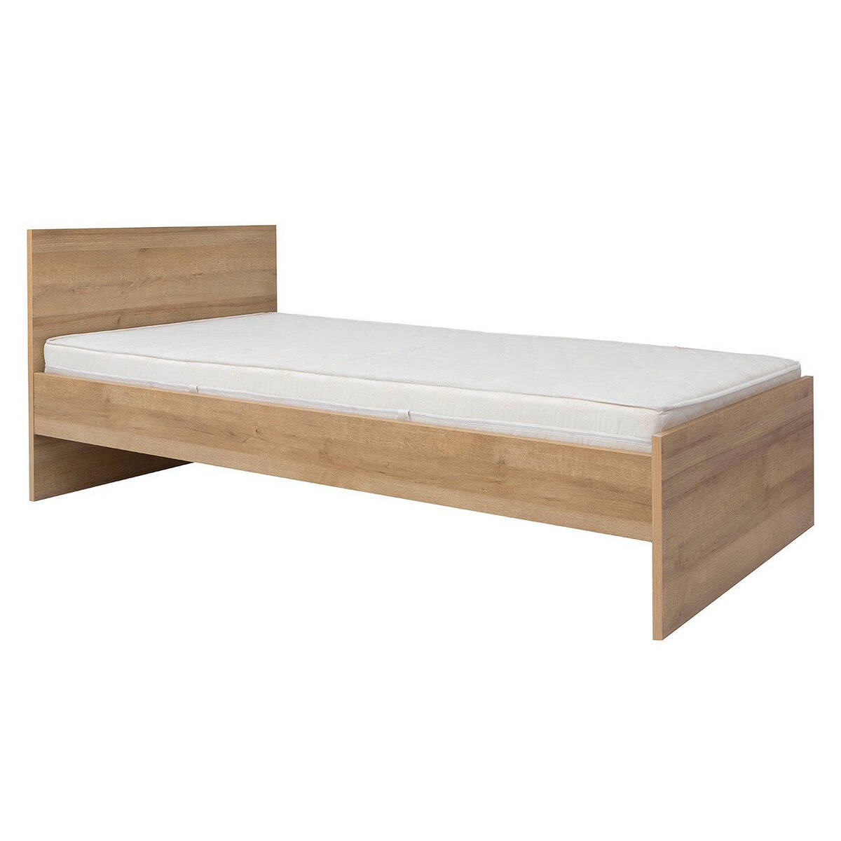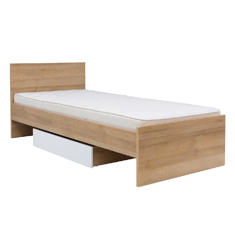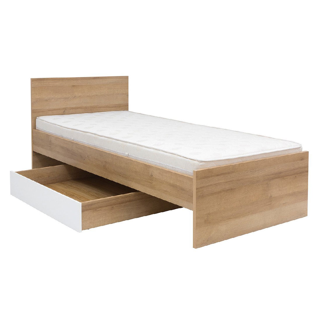 Единично легло за матрак 90х200 см, изработено от ПДЧ и МДФ в натурален дървесен цвят дъб ривиера с възможност за поставяне на чекмедже с лицева част в бял гланц, модулна система Балдер.