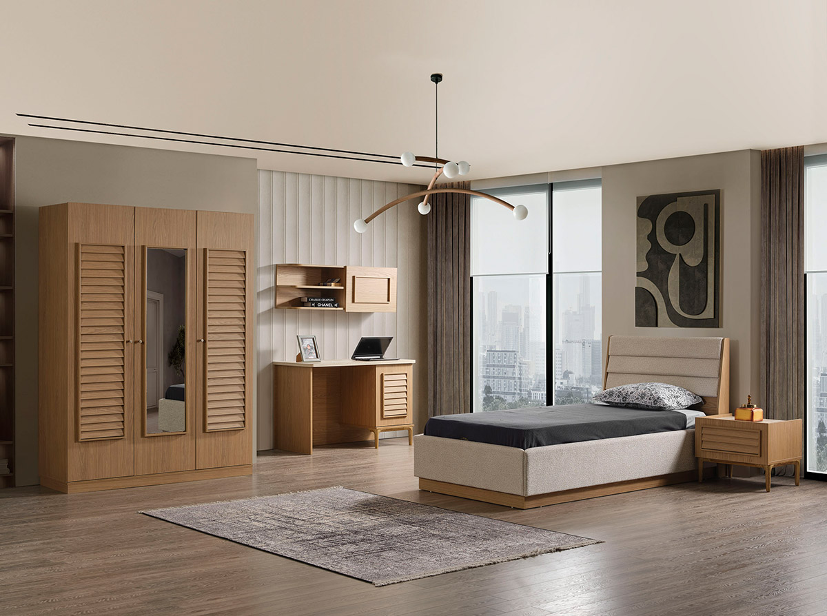 Моделът е подходящ за обзавеждане на стая за подрастващи, където се търси съчетание на практичност и актуална визия.