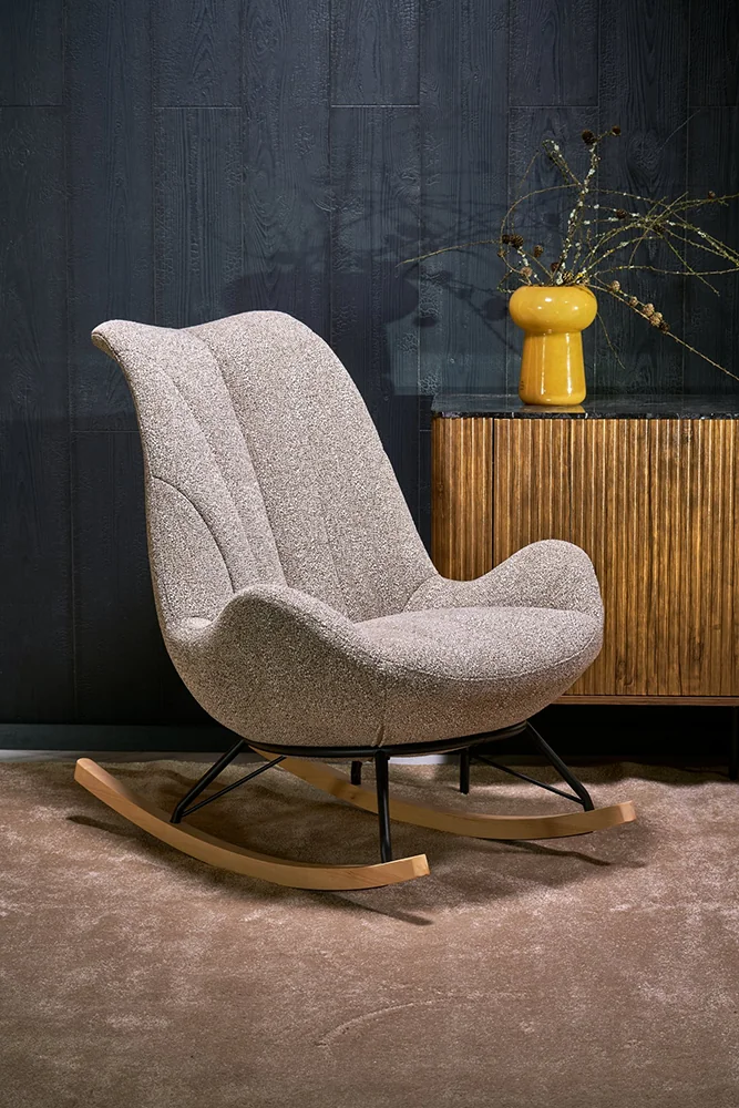 Люлеещо кресло Luis комбинира стил, удобство и устойчивост, а за лесно съчетаване с всеки интериор, се предлага в 2 универсални цвята на дамаската – бежов и сив.