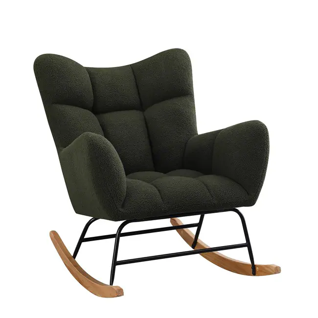 Люлеещо кресло с капитонирана текстилна дамаска в зелен цвят.