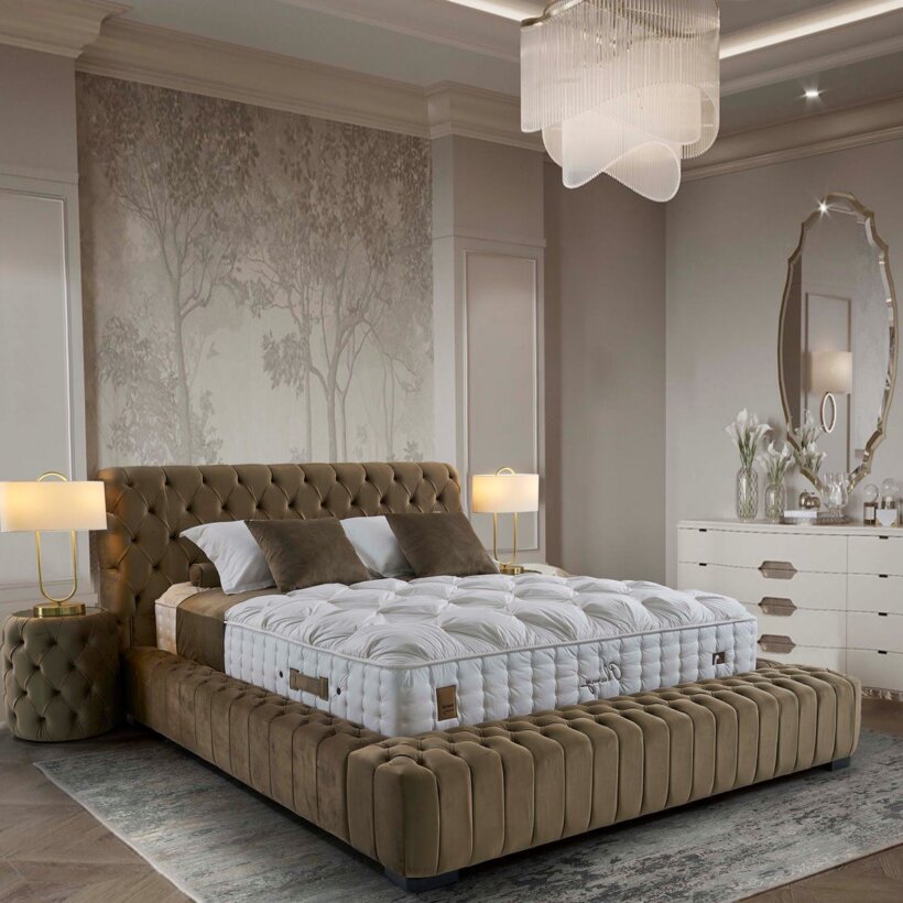- За двойно легло: комплект от 2 декоративни възглавници (45х45см), 2 бели възглавници памук сатен (50х70см), 2 лумбални възглавници в цилиндрична форма и декоративна лента за 395лв.