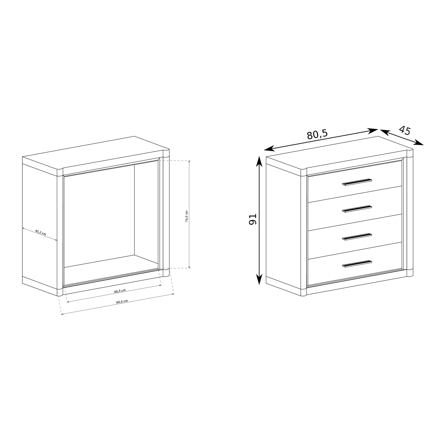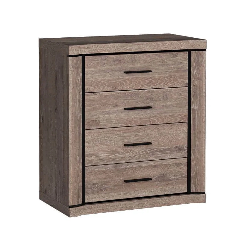 Разполага с четири големи, функционални чекмеджета, които осигуряват достатъчно пространство за съхранение на дрехи, бельо или различни аксесоари.