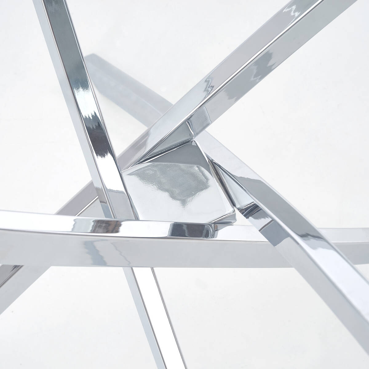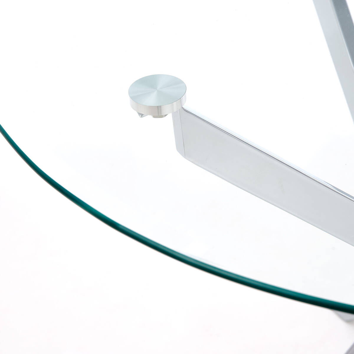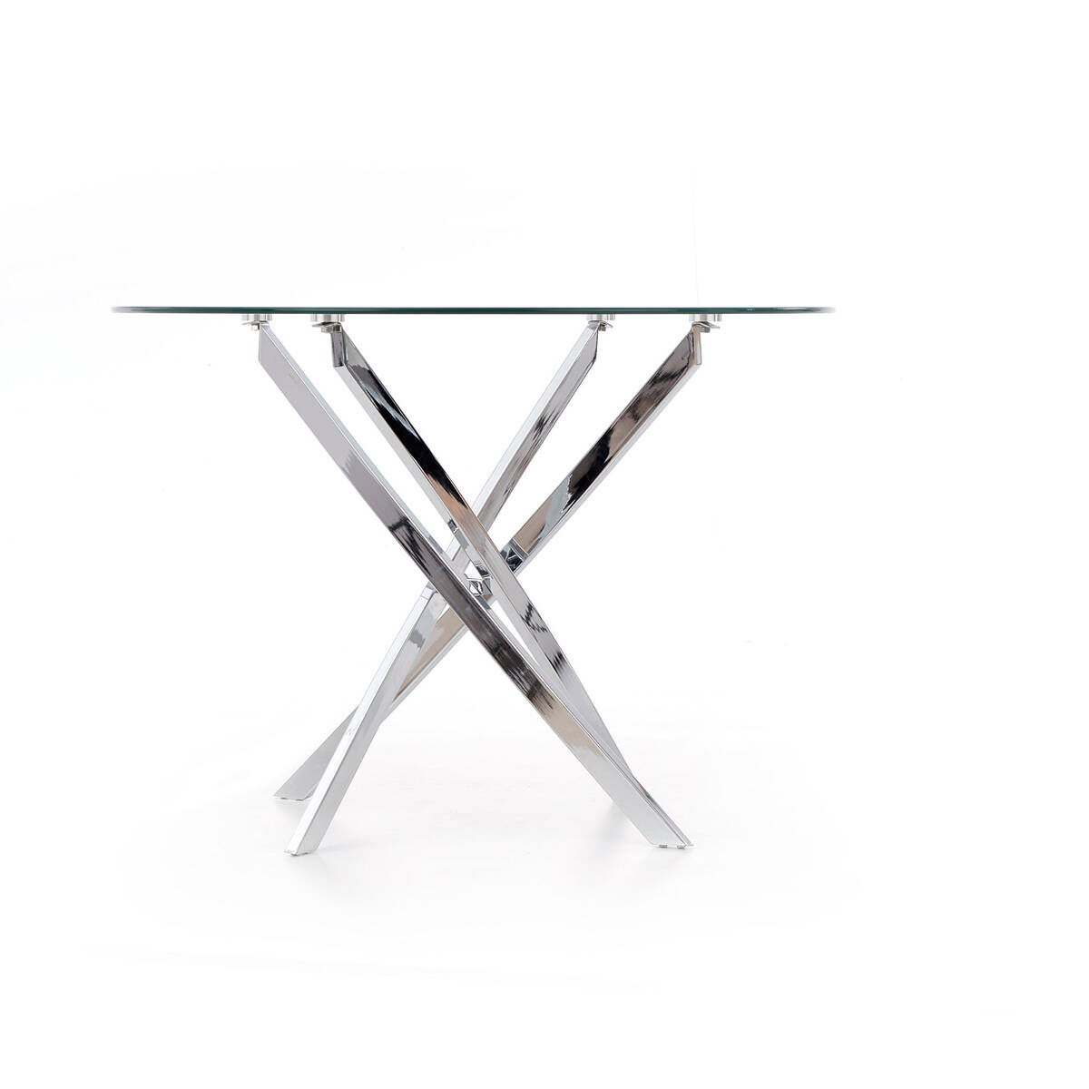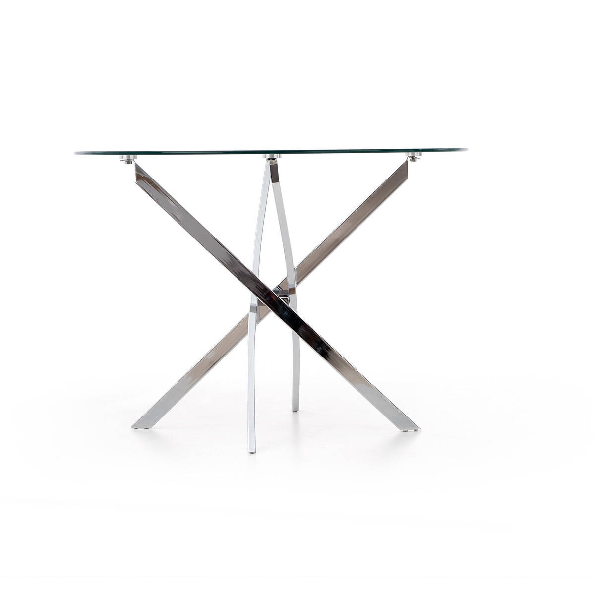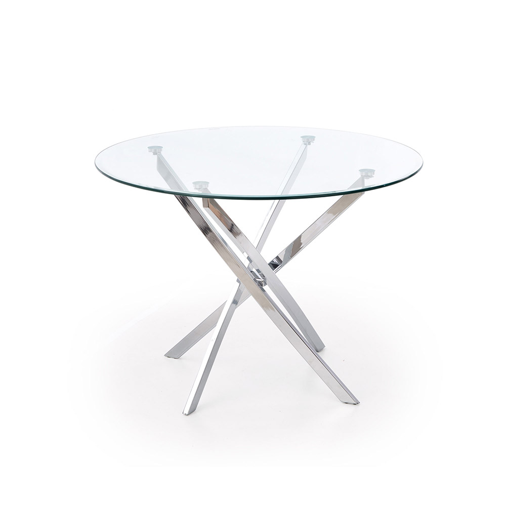 Малка маса от прозрачно стъкло и хромирана стомана Кристал.