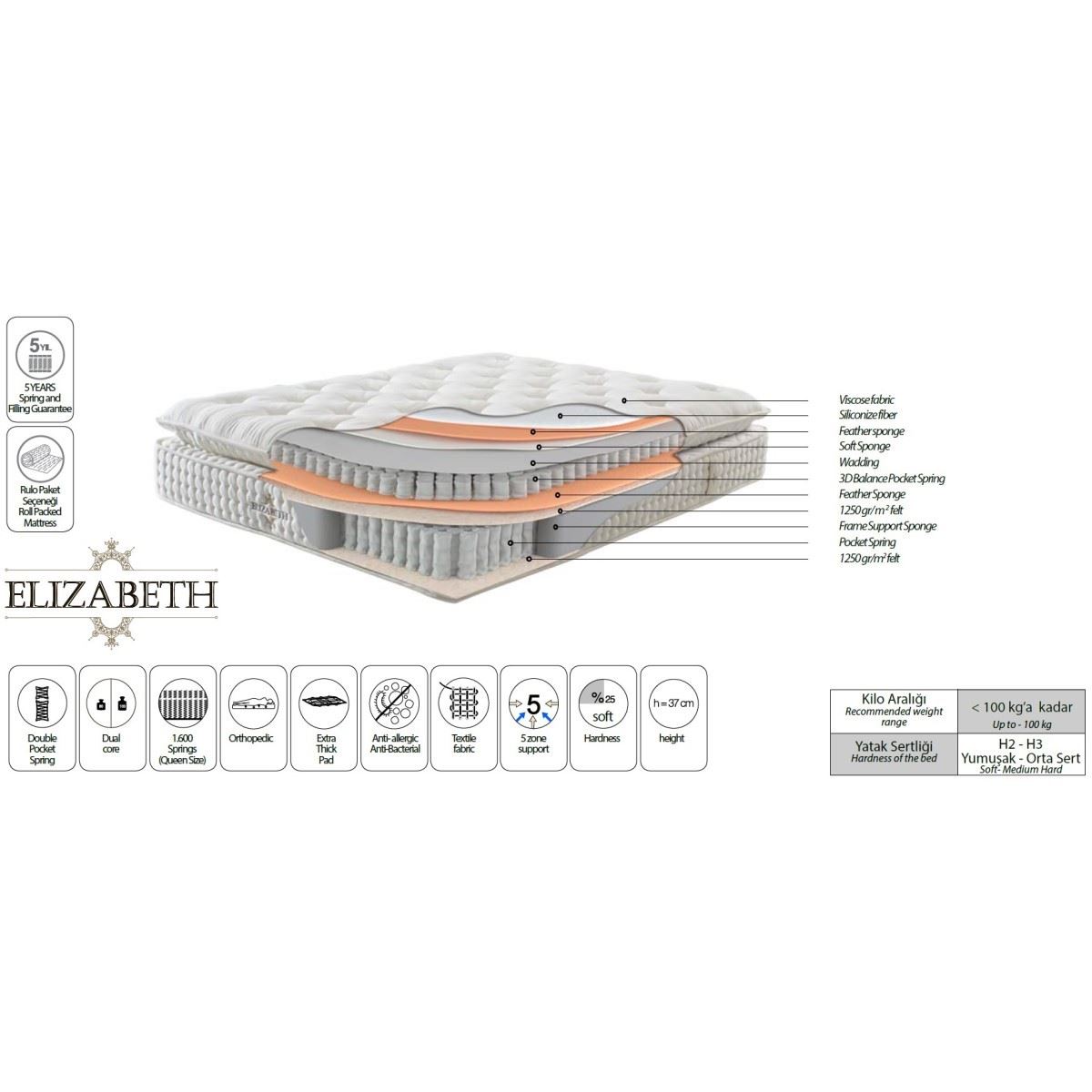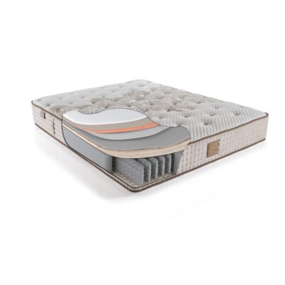 Удобният матрак с височина 37 см е изработен с 3D баланс и двойна покет система с 1600 пружини, осигуряващи свободното движение на партньорите по време на сън, а екстра плътната подложка следва извивките на кръста, врата и ставите и допринася за намаляване на напрежението в тези части.