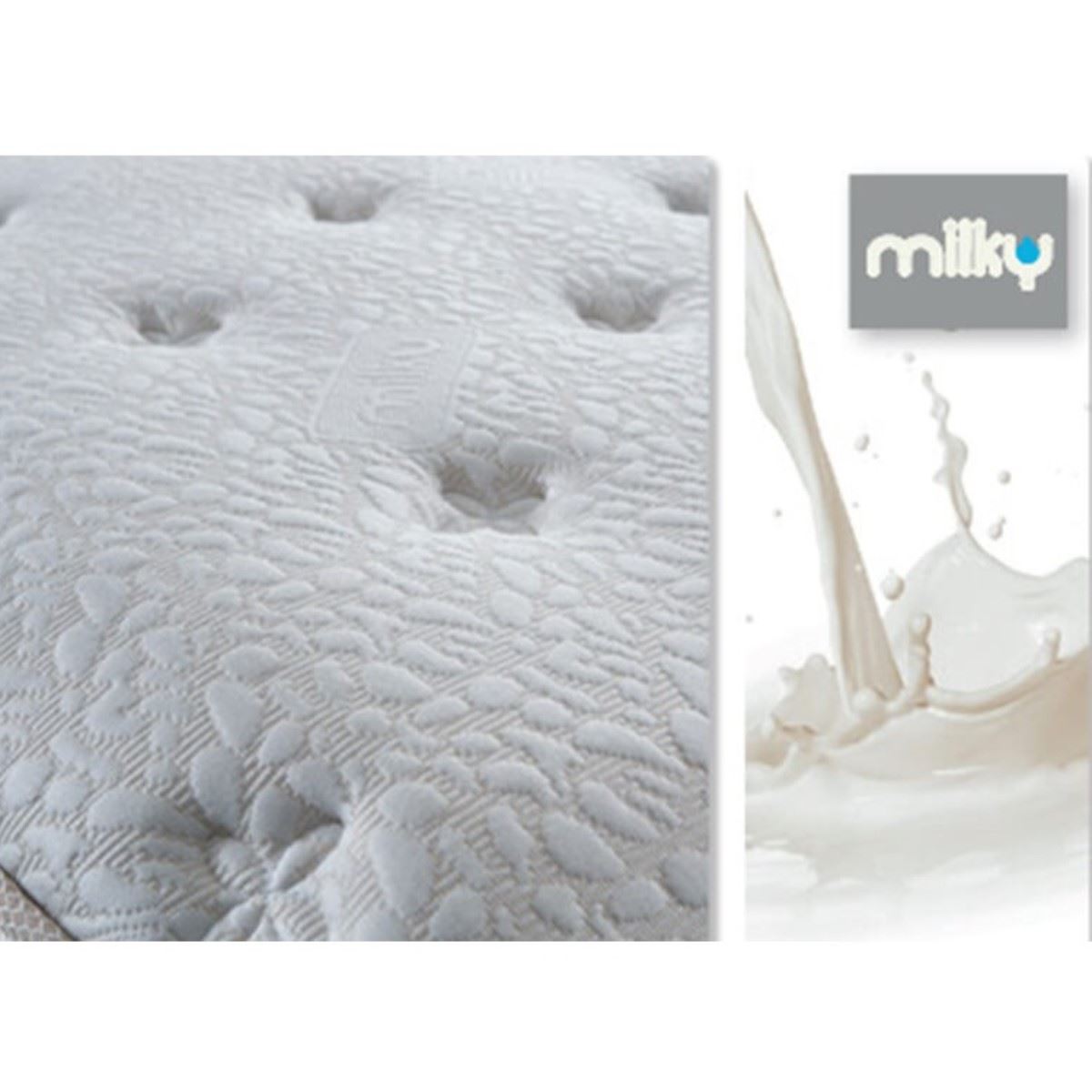 • Материал: текстил, пружинна бонелна система – 8 см, покет пружинна система, пухена подложка