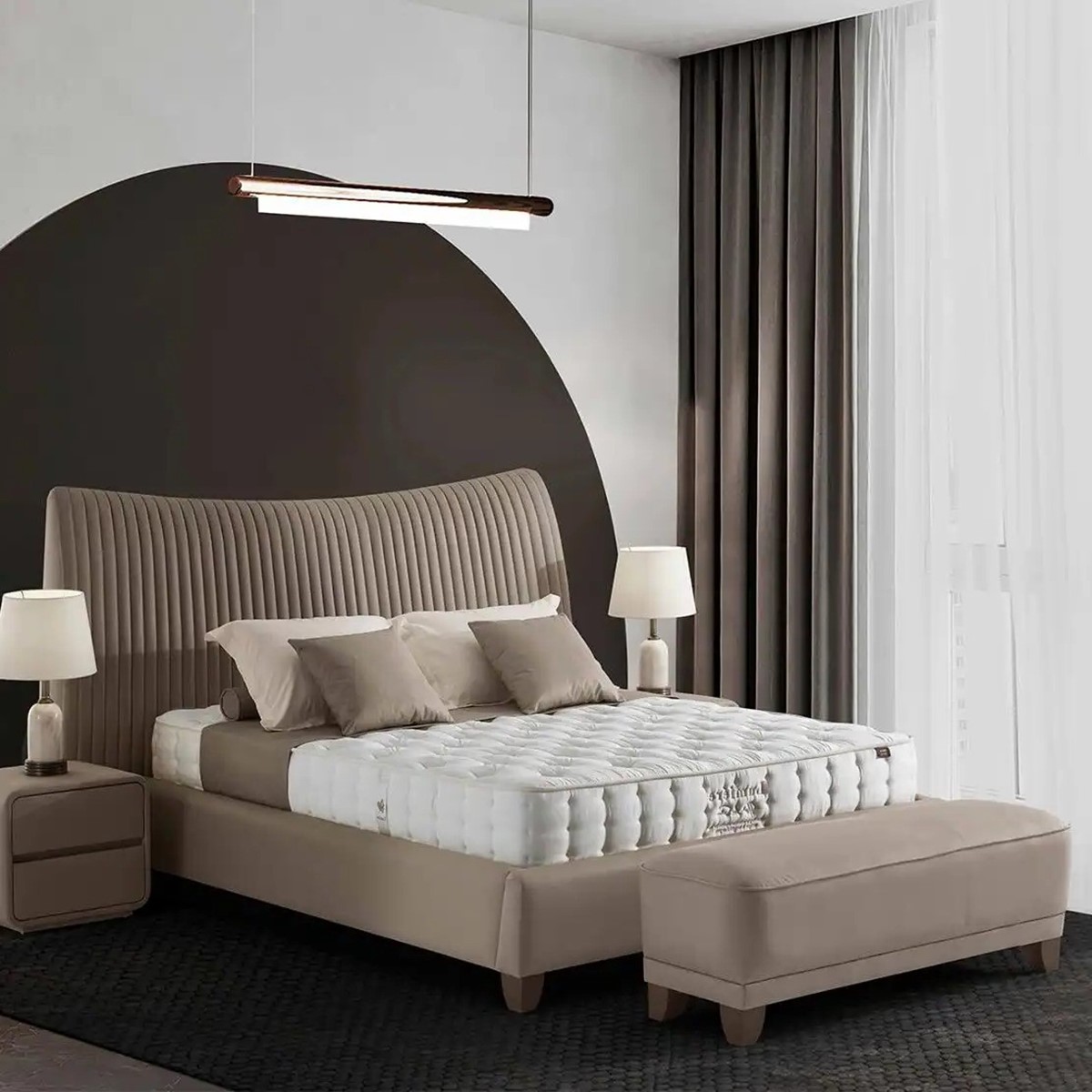 Високо-ниската пружинна система комбинира дълги и къси пружини, които адаптират поддръжката според тежестта на тялото. Повърхността е изработена от текстилна тъкан с пълнослойно ватиране за допълнителна мекота и издръжливост. Текстилът е устойчив на износване и подпомага дългия срок на експлоатация на матрака.
