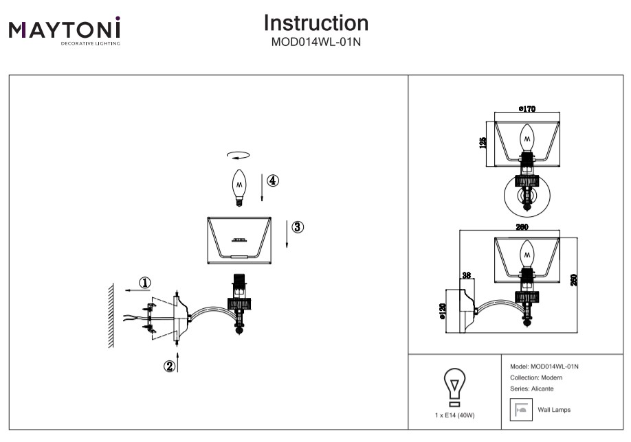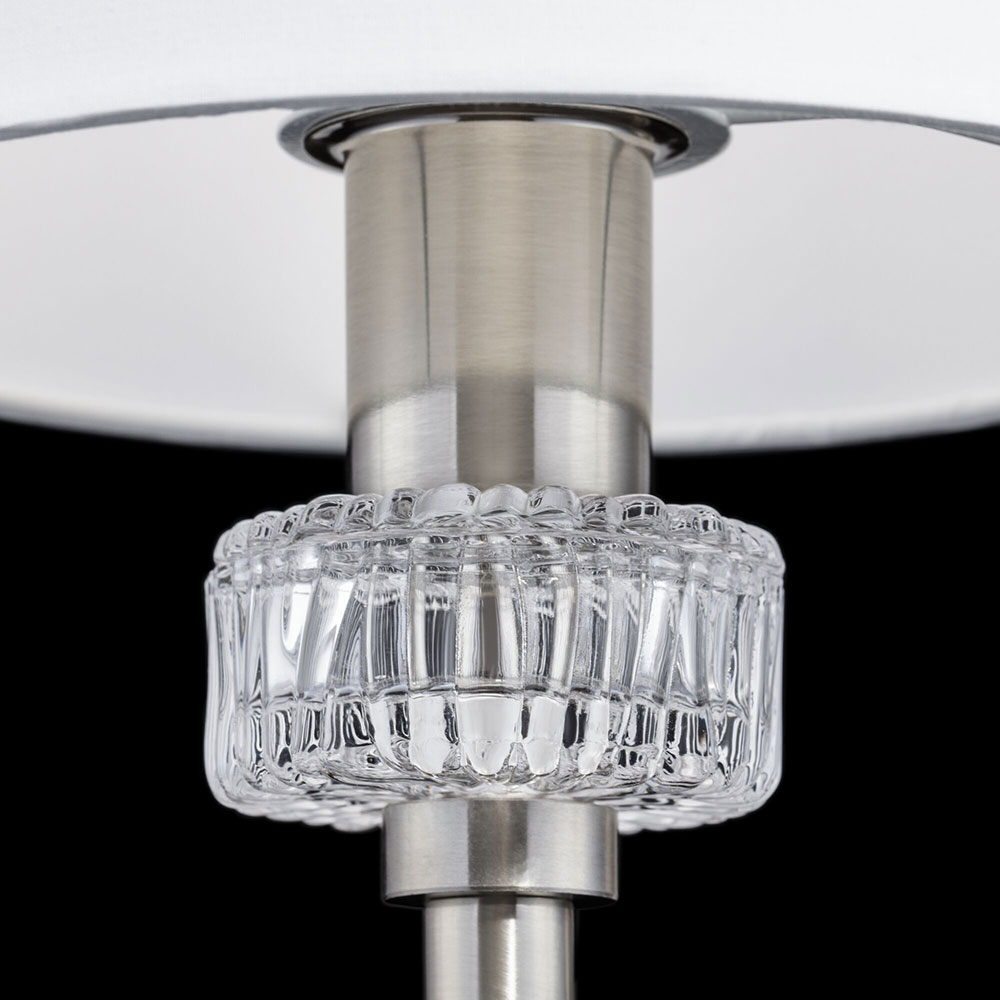 Метален аплик в цвят никел с декоративен елемент от стъкло и бяла цилиндрична шапка от текстил върху PVC рамка Maytoni, серия Alicante.