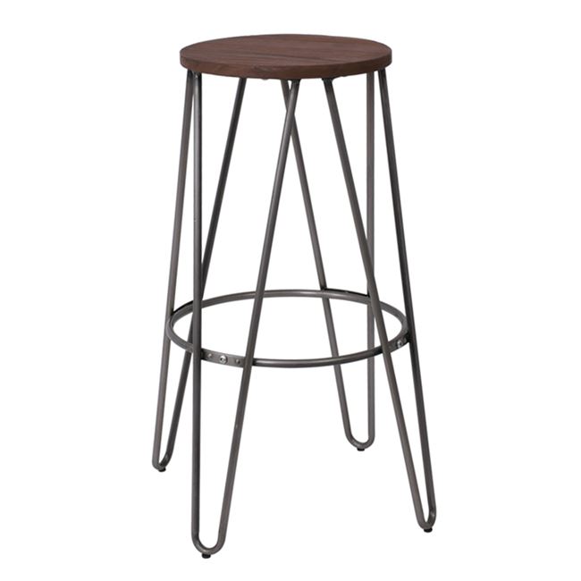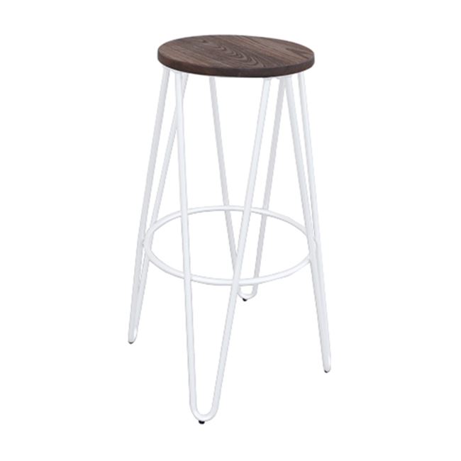 Метален бар стол с кръгла дървена седалка Карли, който се предлага в четири различни цвята на основата – бял, черен, антично черен и сив металик.