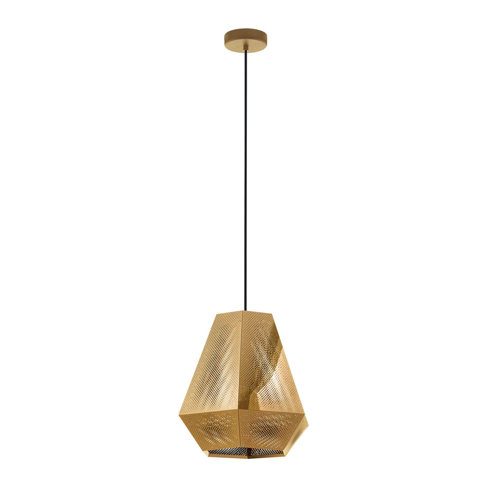 Метален пендел с геометрична решетъчна форма на тялото, решен в цвят месинг Eglo, серия Chiavica 1.