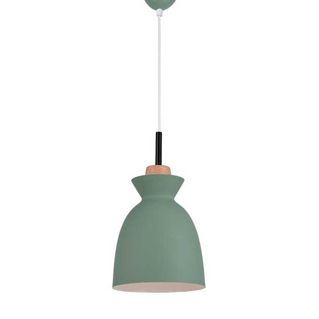 Метален пендел с кръгла основа, алуминиев разсейвател в зелен цвят и декоративен дървен елемент Zambelis, серия Bathurst.