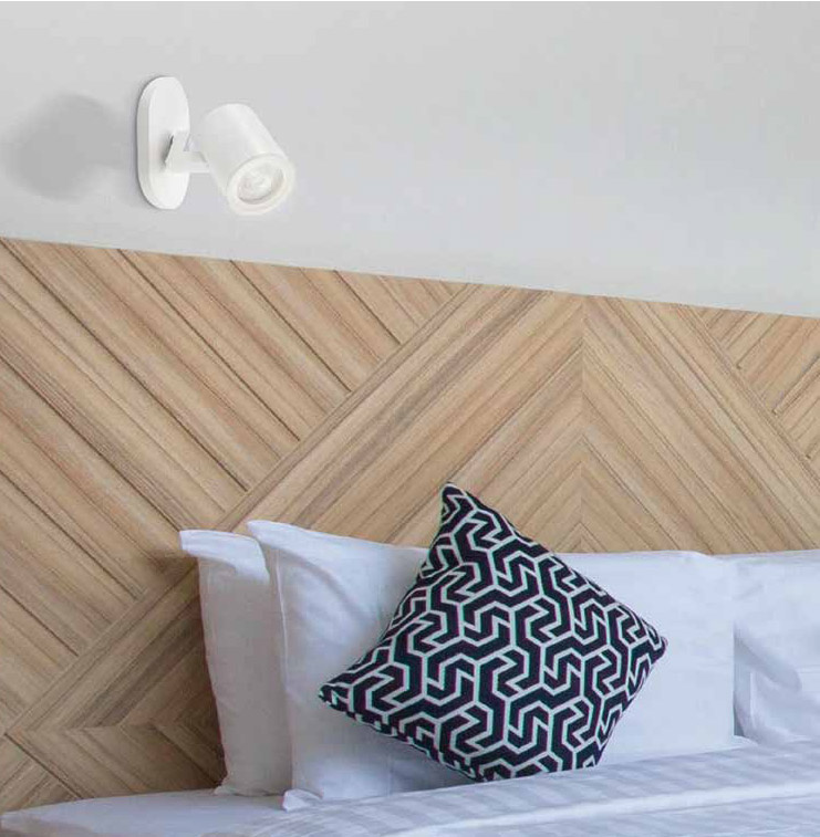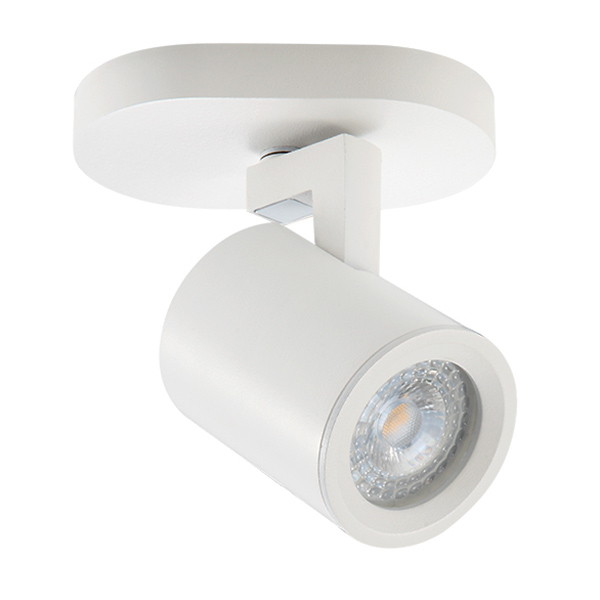 Метален спот, който може да бъде монтиран като аплик с бяло цилиндрично тяло и овална основа Zambelis.