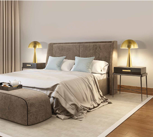 Метална настолна лампа с конусовидна основа и полусферична шапка, наподобяваща формата на гъба от фирма Zambelis.
