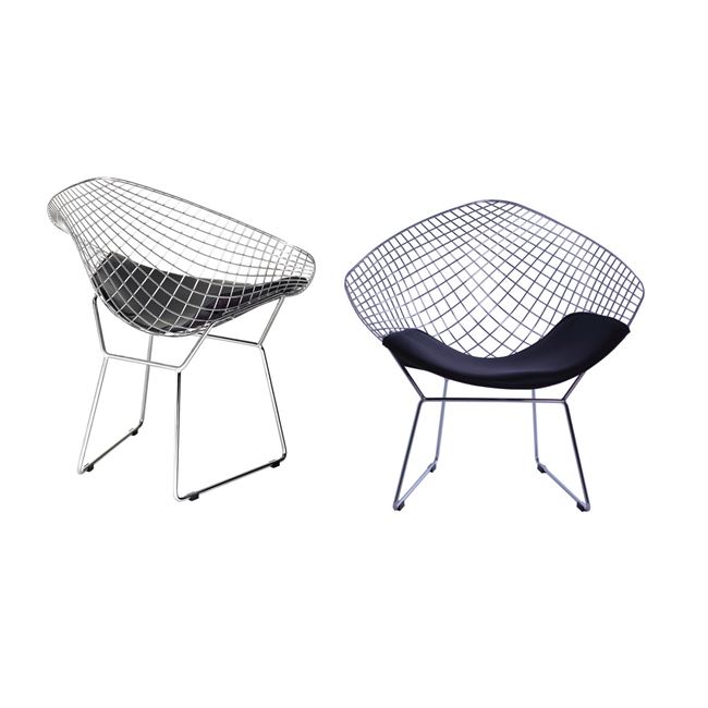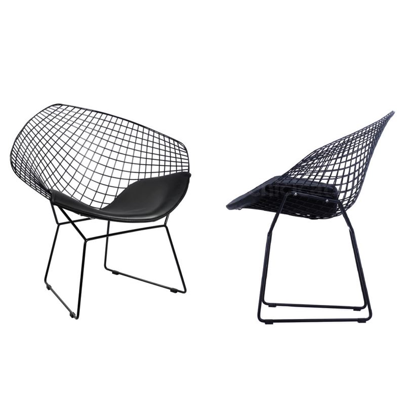 Метално кресло с решетъчна конструкция и мека седалка от черна еко кожа, серия Sax.