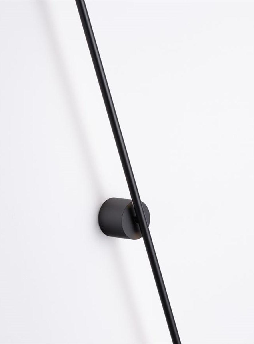 Минималистичен аплик в черен цвят със съвременна визия – подходящ избор за осветяване на различни помещения като всекидневна, баня, коридор, антре, офис или стълбище.