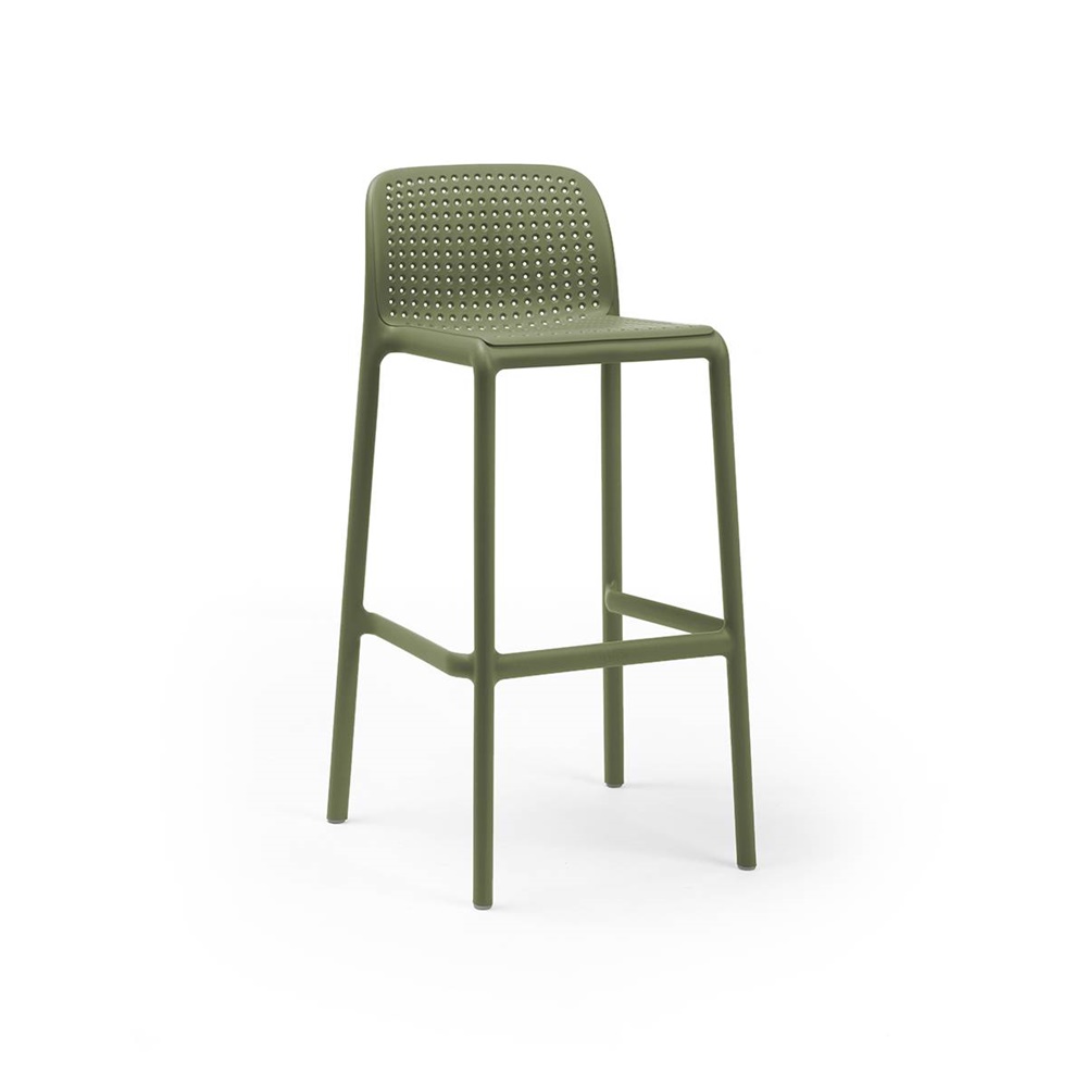Модерен бар стол, изработен от полипропилен с фибростъкло и UV защита в седем цвята Комо.